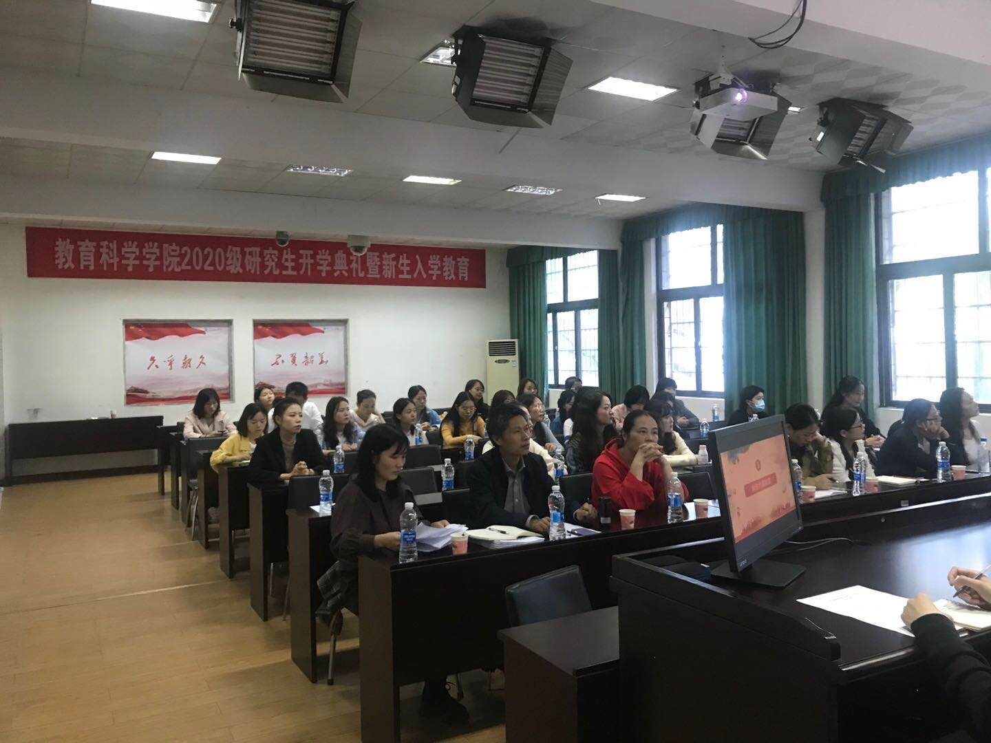 朗朗金秋,硕果累累。9月25日上午,教育科学学院在1教学楼1302教室隆重举行2020级研究生开学典礼。学院领导班子成员刘理、刘淳松、彭阳红,研究生导师及教师代表、研究生辅导员、学位点秘书及2020级教育管理和小学教育全体研究生参加。