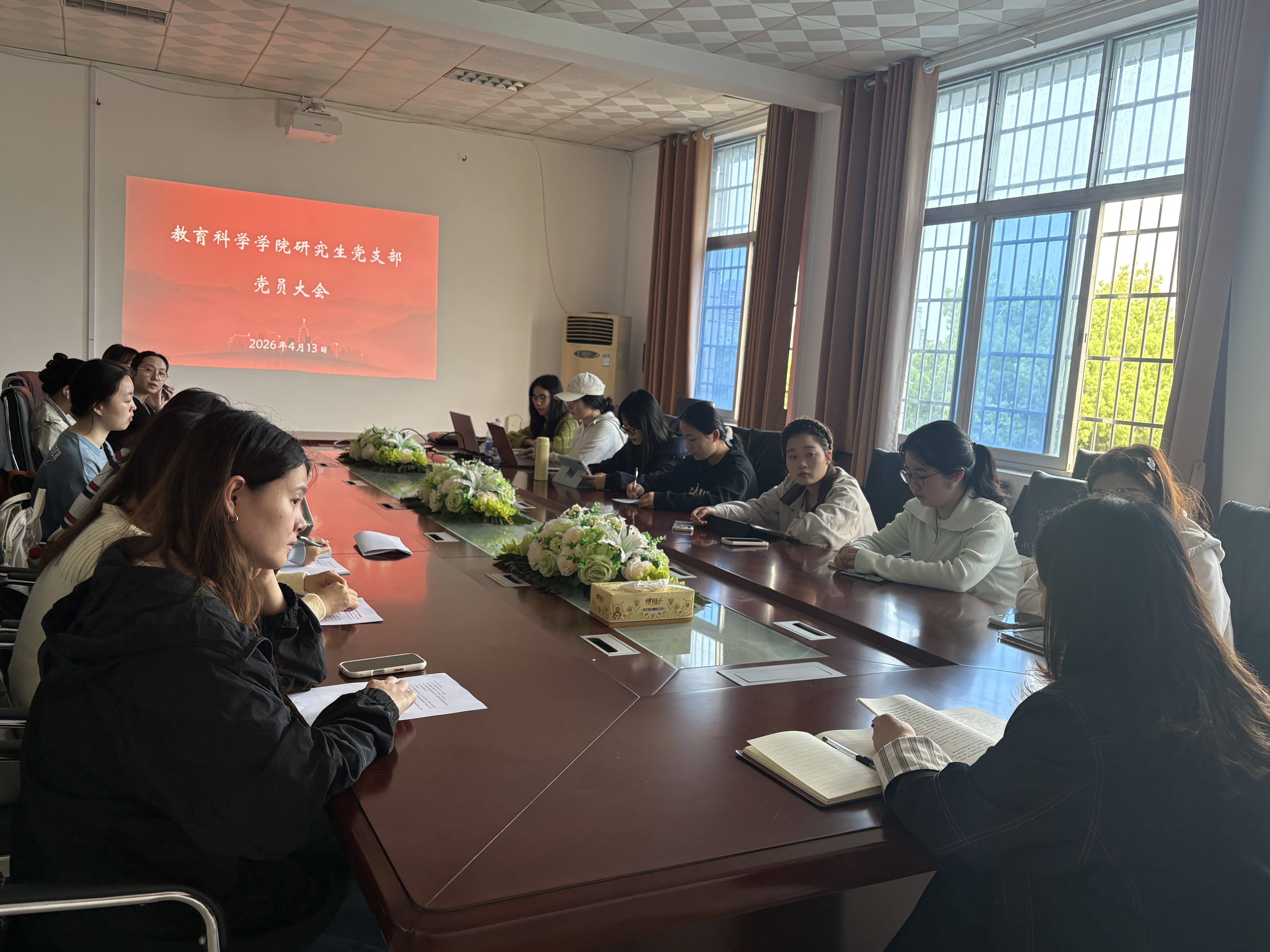 为深入学习贯彻习近平新时代中国特色社会主义思想,引导研究生党员树立和践行正确政绩观,强化公仆意识与使命担当,2026 年 4 月 13 日,教育科学学院研究生党支部在 1305 会议室召开党员大会,组织开展专题学习与观影活动。研究生党支部书记王炜领学并讲话,会议由刘瑾同志主持,支部全体党员参会,