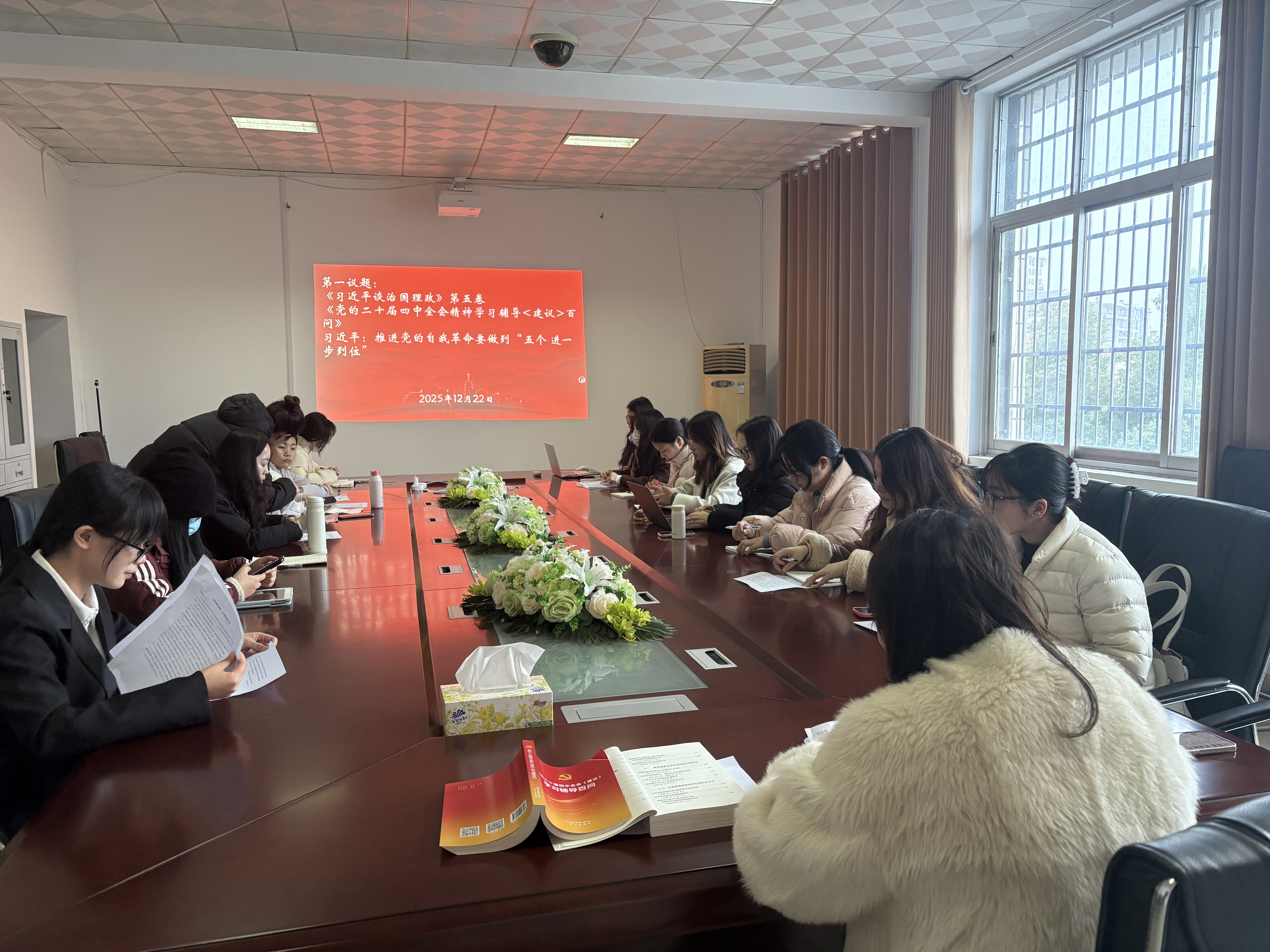 2025年12月22日,学院研究生支部在1305会议室组织全体党员主要围绕党的二十届四中全会精神开展专题理论学习。