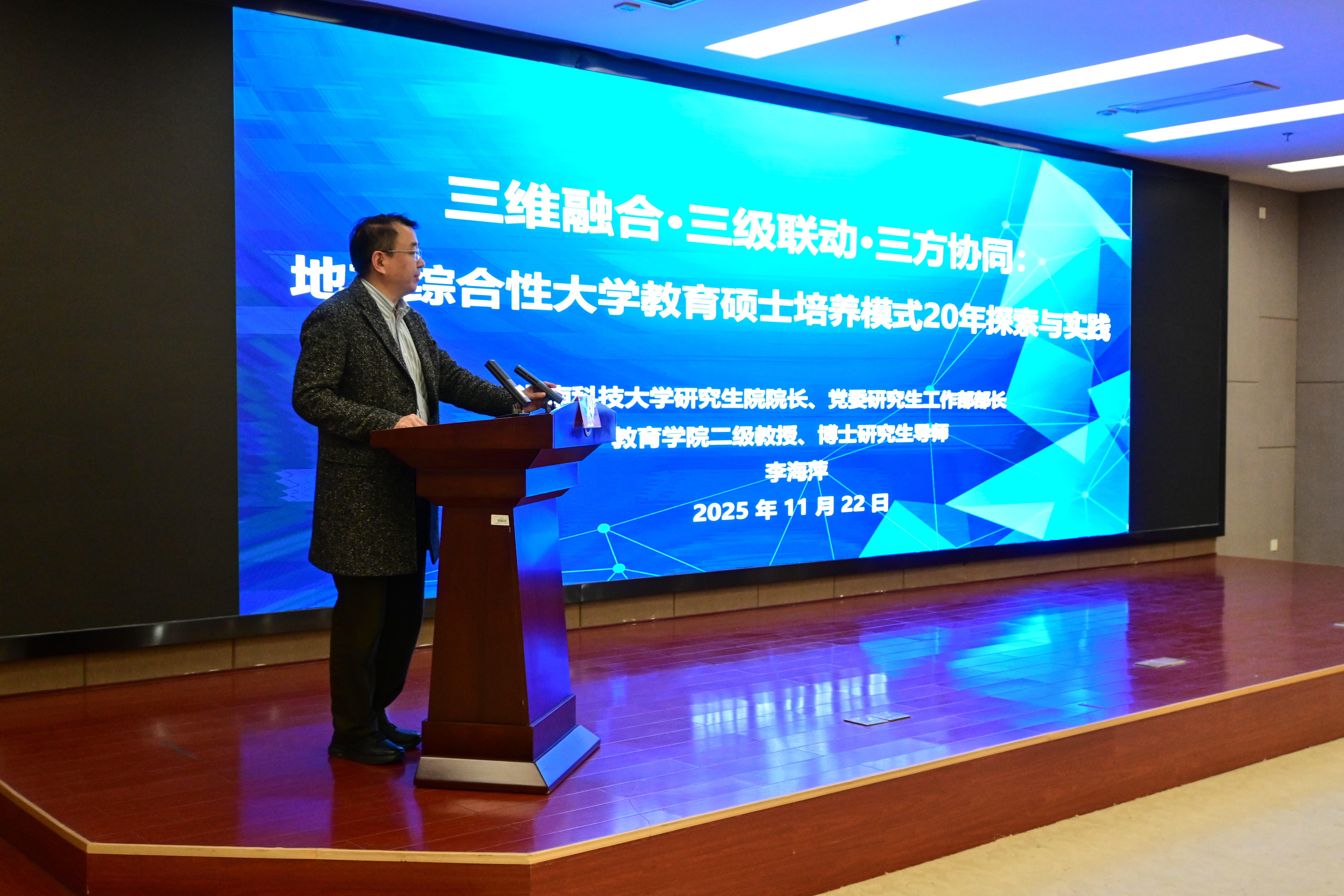 主旨报告阶段,湖南科技大学研究生院院长、二级教授李海萍和益阳市南县实验学校教育集团党总支书记、正高级教师孟玲带来了高水平学术分享。孟玲以《在“实”里深耕,向“光”处前行——教学“时光”之实践、感悟与追求》为题,结合一线教学经验,阐释教育家精神在基础教育实践中的落地路径。李海萍以《三维融合 三级联动 三方协同:地方综合性大学教育硕士培养模式20年探索与实践》为题,展示了综合性大学以教育家精神为引领创新研究生人才培养模式的生动实践。专家们的报告内容丰富、视角新颖,为与会研究生提供了宝贵的学术启发。